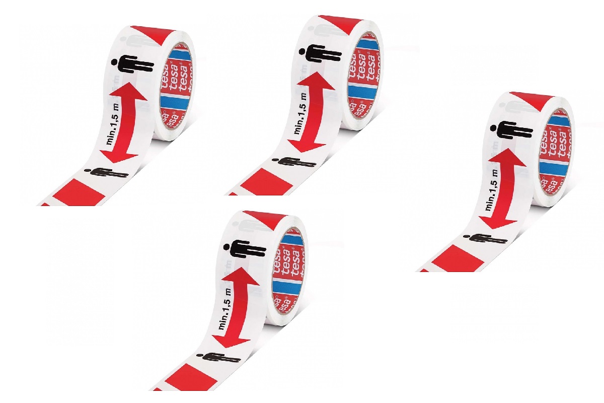Cinta Autoadhesiva Especial DISTANCIAMIENTO SOCIAL. Para uso en interiores y exteriores.