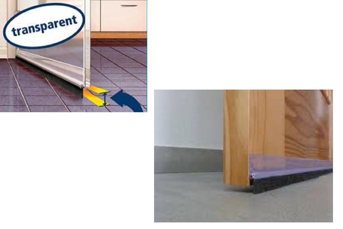 Zócalo para parte baja de puertas Standard de tesa moll® es un perfil autoadhesivo contra corrientes de aire. Muy efectivo para brechas de hasta 12 mm bajo las puertas.